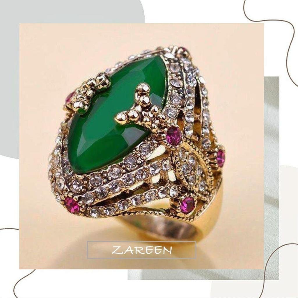 Green And Maroon Zircon Silver Rings