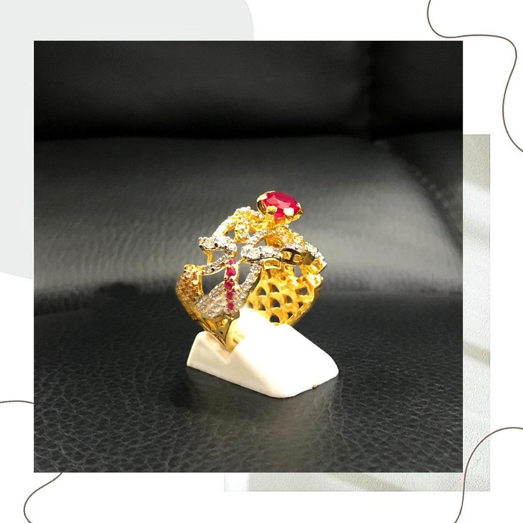Maroon And Silver Stones Golden Rings