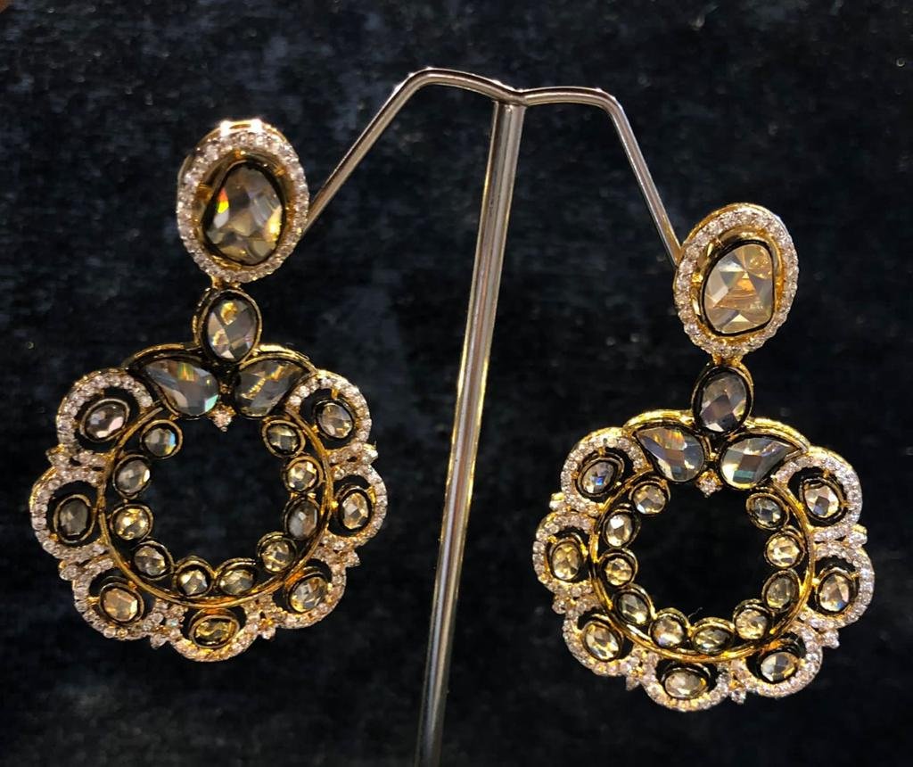 Silver Zircon Golden Earrings